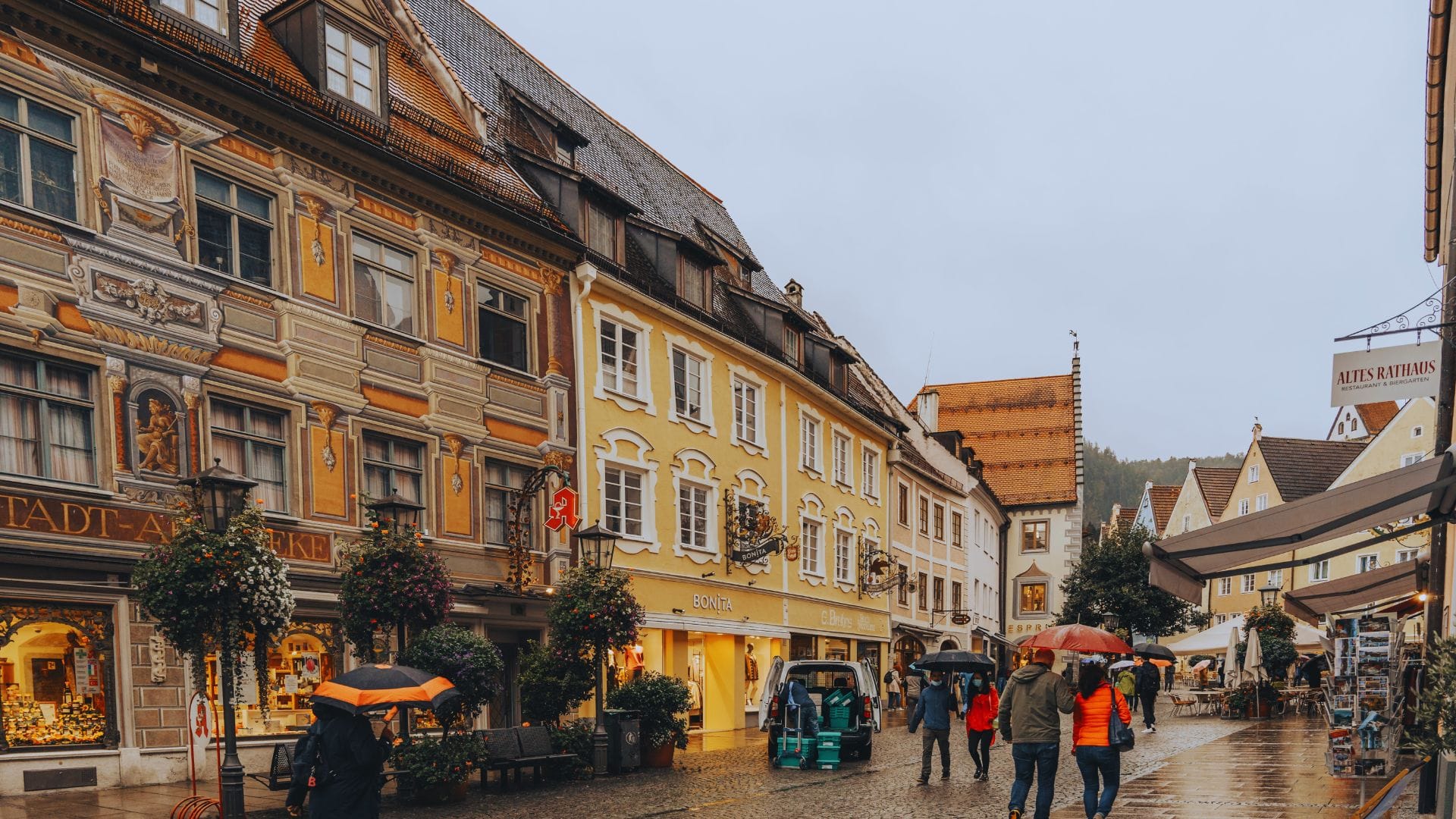 Füssen ist der südliche Abschluss der Romantischen Straße. Die Altstadt ist klein, farbig und gut begehbar. Das Hohe Schloss, der Lechfall und das Kloster St. Mang setzen klare Punkte. In kurzer Entfernung liegen Neuschwanstein und Hohenschwangau; Tickets besonders in der Hauptsaison rechtzeitig sichern. Für Outdoor-Fans sind Forggensee und Bergblicke praktische Ergänzungen zum Stadtbummel.