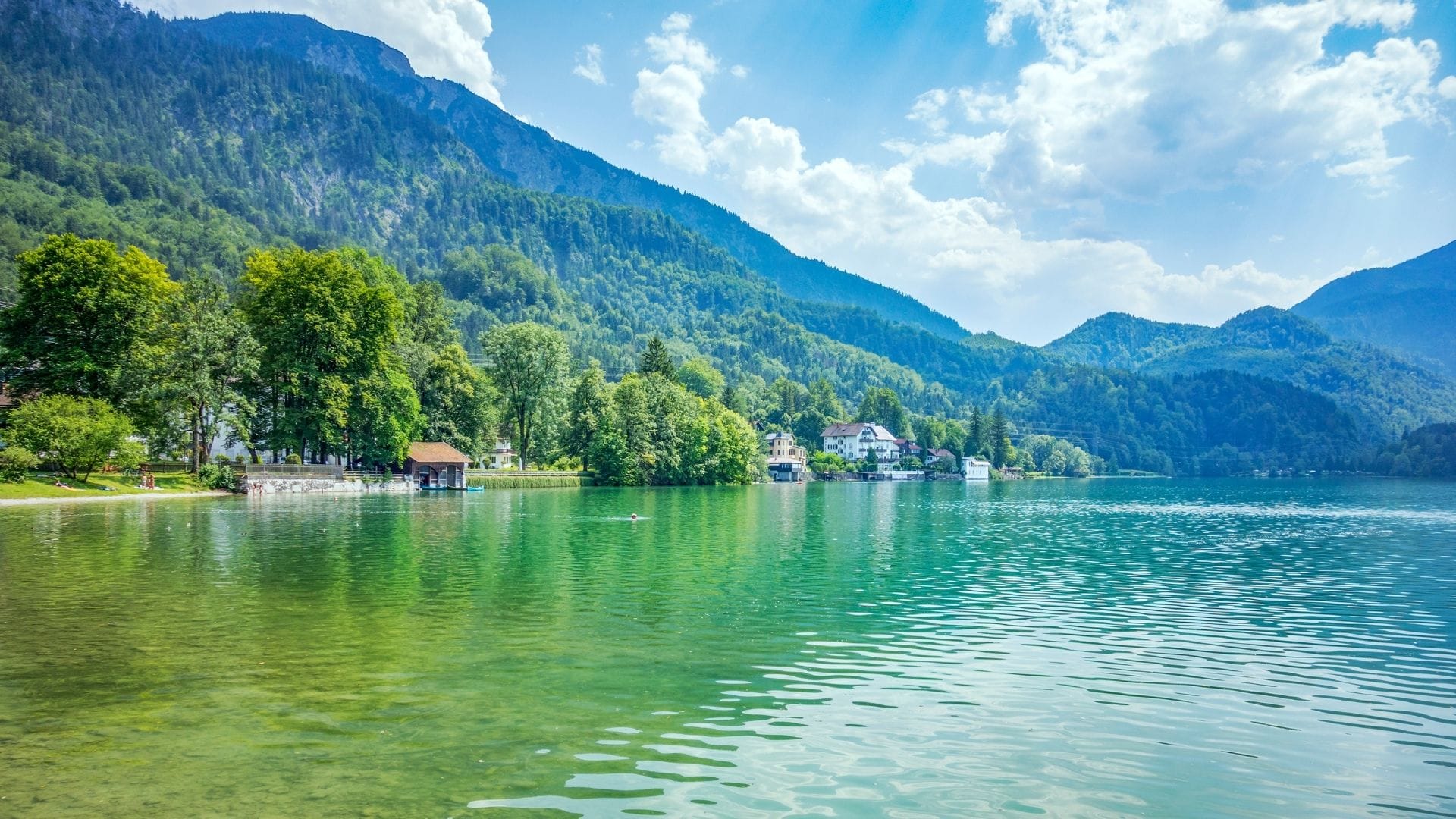 Besonders familienfreundlich sind der Staffelsee (warm, flach, Freibad), die Seen des Fränkischen Seenlands (Sandstrände, Spielplätze, Barfußpfade) und der Chiemsee (Schifffahrt zu den Inseln, flache Strände). Der Alpsee-Rundweg bei Schwangau ist auch mit kleinen Kindern gut machbar.