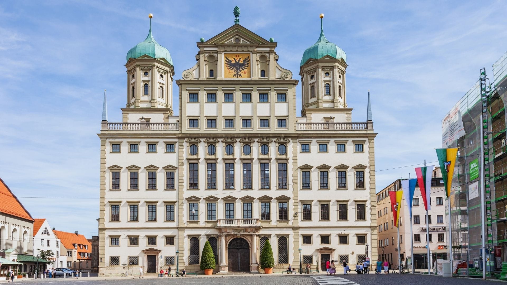 Das Augsburger Rathaus gilt als eines der prächtigsten Rathäuser Deutschlands. Erbaut vom Stadtbaumeister Elias Holl in den Jahren 1615–1624, beeindruckt der monumentale Renaissance-Bau sowohl außen wie innen. Die Fassade mit den beiden Zwiebeltürmchen strahlt Selbstbewusstsein aus – schließlich war dieses Rathaus lange Zeit das höchste Gebäude nördlich der Alpen.