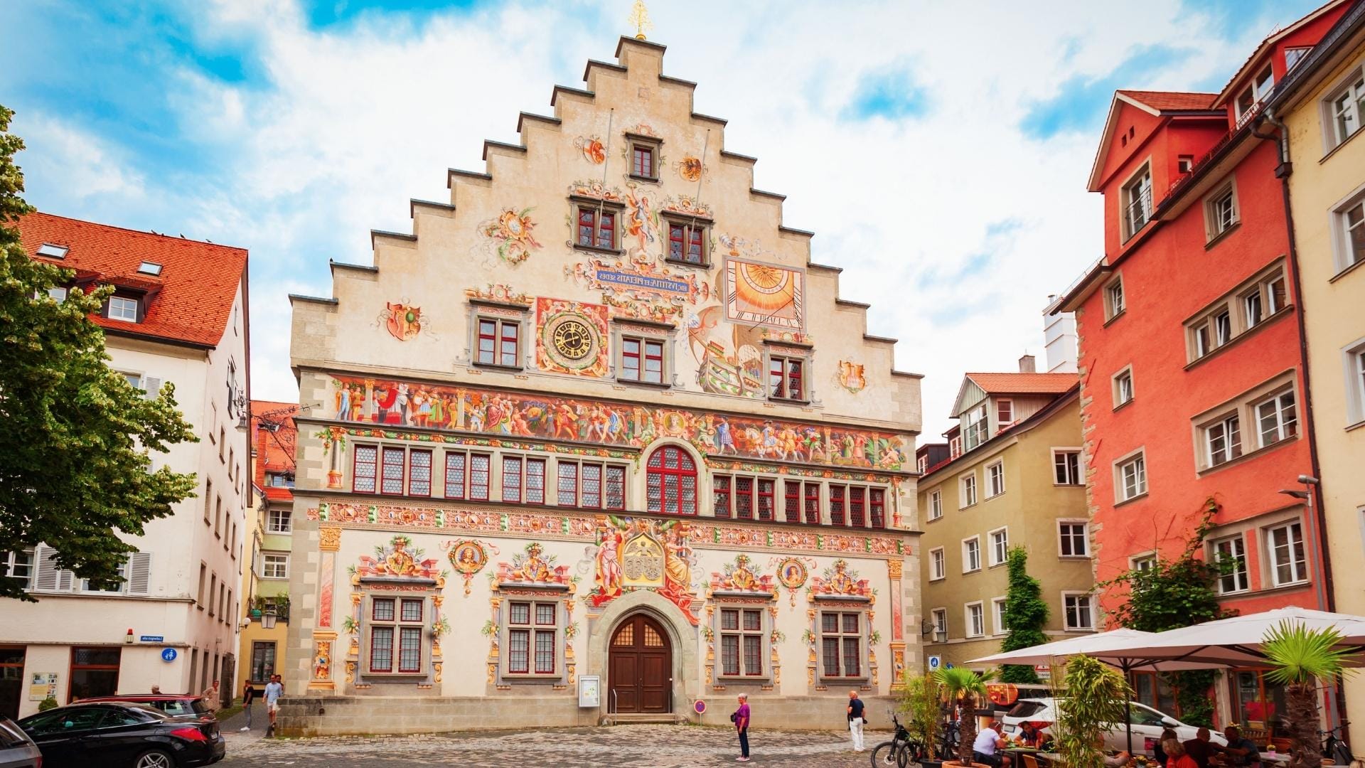 Ein echter Blickfang ist das Alte Rathaus im Herzen der Altstadt. Schon von weitem fällt die reich verzierte Fassade mit ihren farbenfrohen Wandmalereien ins Auge. Auf den Bildern entdeckst du historische Szenen und Wappen – hier spürst du förmlich den Stolz der Lindauer auf ihre Stadtgeschichte.