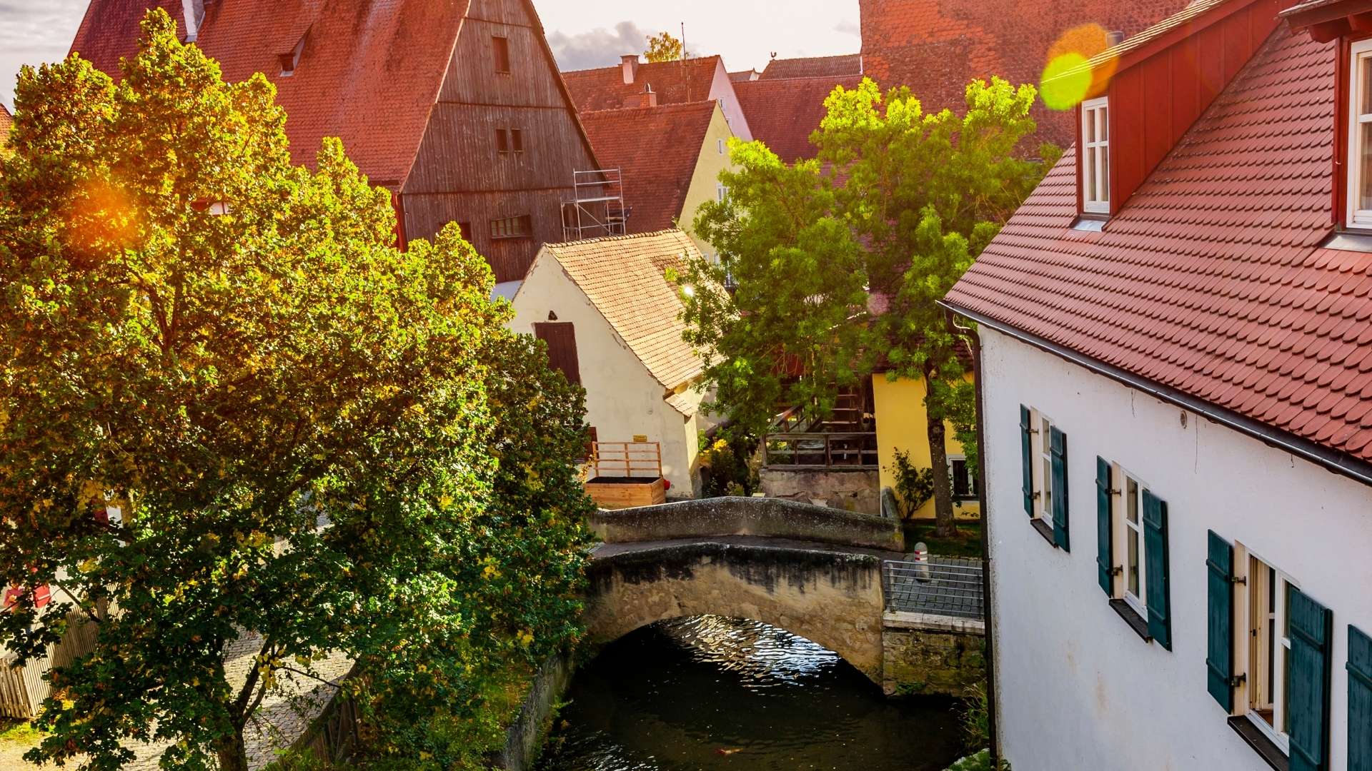 Das Gerberviertel gehört zu den ruhigsten und zugleich stimmungsvollsten Ecken Nördlingens. Entlang der Eger reihen sich schmale Fachwerkhäuser aneinander, viele davon leicht schief und voller Charakter. Früher wurde hier gearbeitet, gegerbt und gehandelt, heute wirkt das Viertel fast beschaulich.