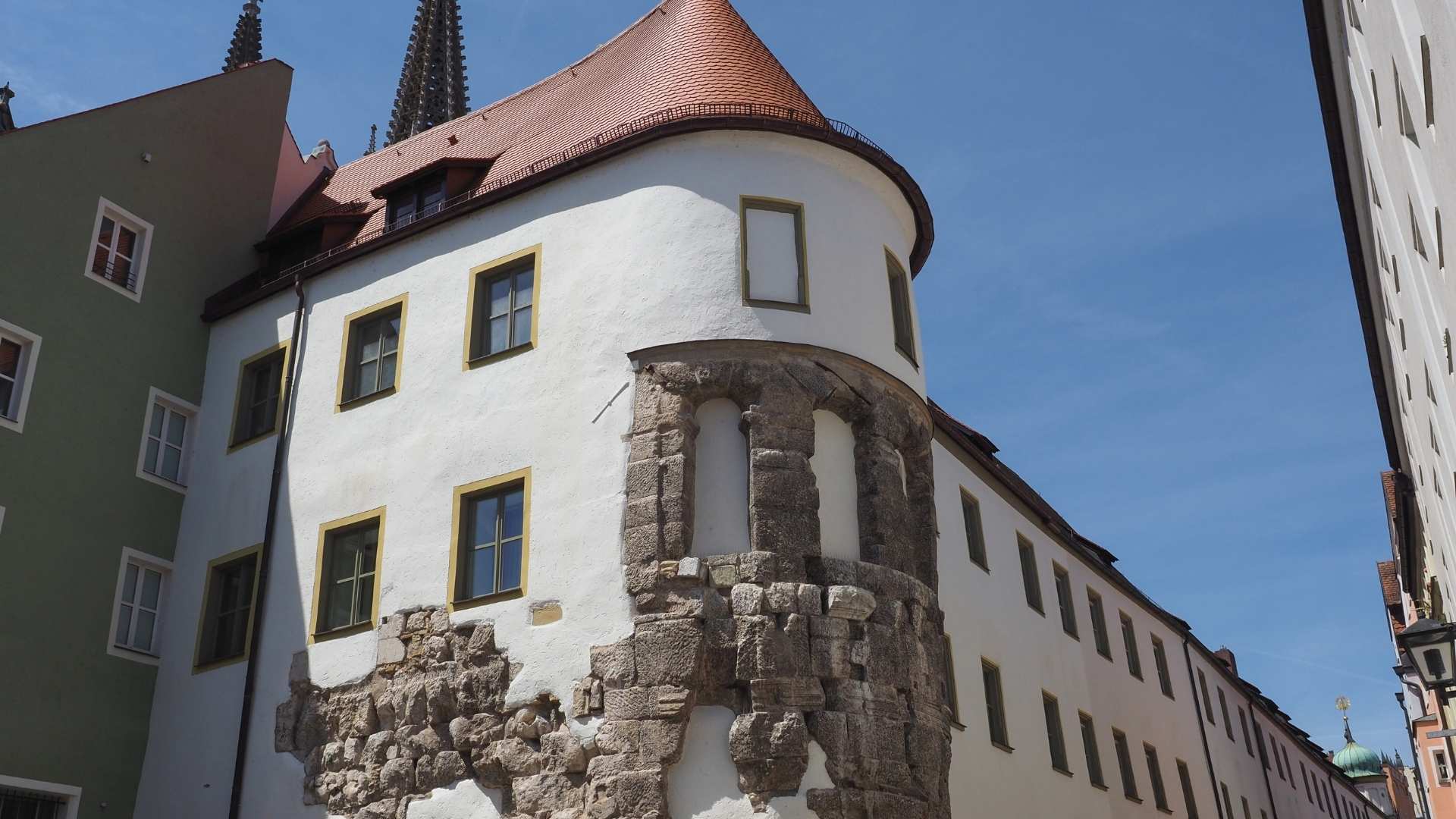 Die Porta Praetoria fällt vielen erst auf, wenn man direkt davorsteht. Zwischen anderen Gebäuden wirkt das römische Stadttor beinahe verborgen. Dabei stammt es aus einer Zeit, in der Regensburg noch ein römisches Legionslager war.