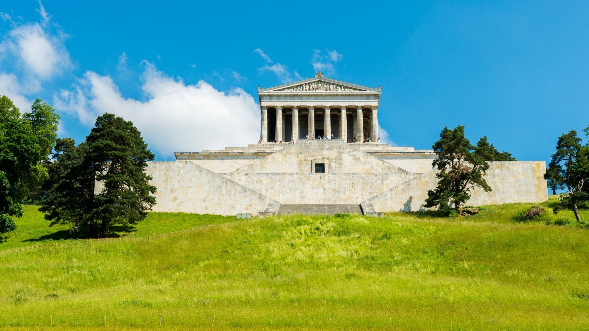 Hoch über der Donau erhebt sich die Walhalla und ist schon von weitem zu erkennen. Der Bau erinnert an einen antiken Tempel und steht ruhig über dem Flusstal. Der Weg nach oben eröffnet immer neue Ausblicke auf die Landschaft.