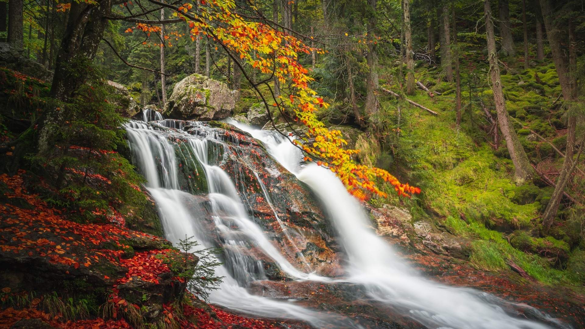 Die Rißlochwasserfälle zählen zu den höchsten im Bayerischer Wald und zeigen die Landschaft von ihrer rauen Seite. In der Rißlochschlucht überwindet der Rißbach auf 1,6 Kilometern rund 260 Höhenmeter und stürzt dabei in mehreren Kaskaden talwärts. Fünf Hauptstufen bauen sich zu einer Gesamthöhe von etwa 55 Metern auf, der Hauptfall fällt rund 15 Meter frei. Mehrere Bäche vereinigen sich in der Schlucht zum Rißbach, was das Rauschen besonders satt macht. Man bewegt sich hier zwischen Felswänden, Wurzeln und Moos, oft dicht am Wasserlauf, und erlebt die Kaskaden aus nächster Nähe. Die Kaskaden wechseln zwischen breiten Rinnen und schmalen Stufen.